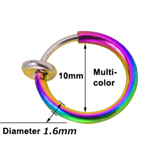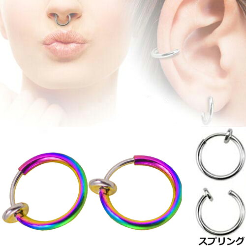 レインボー スプリング イヤーカフ ノンホールピアス 1個販売 シンプル スプリングタイプ イヤリング バネ式 イヤークリップ フェイクピアス ノンホール メンズ レディース プレゼント リングピアス風 フープピアス風 鼻 口 耳 軟骨 ニップル 挟む 虹色 ステンレス